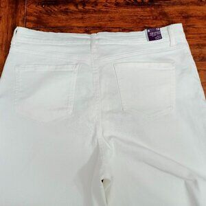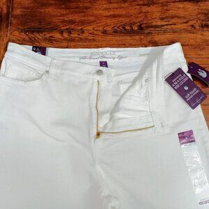 Gloria Vanderbilt Amanda wide-leg crop jeans are a high-rise, cropped style jean with a wide leg, made from a stretch denim blend for comfort. The jeans feature a classic 5-pocket design with a zipper fly and button closure. They are designed to sit at the natural waist and are known for their "all around slimming effect".