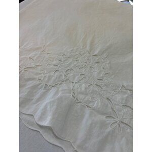 Vintage White Battenberg Pillowcase Embroidered Floral Scalloped Edges