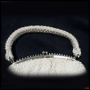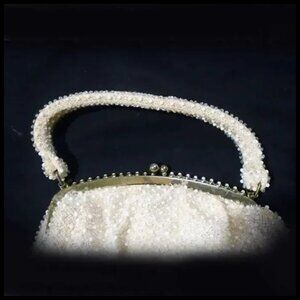 These are sometimes known as ''half bead purses'', because the beads are part of the fabric, but these beads are not half beads, even though they are still part of the fabric. This is white and clear on white, Not pure white, a little more ivory. It's different. Look at the white stones on the frame. Goldtone frame, no pitting or fade, kiss closure. Lined in same color faille. Shown inside out so you can see condition. Gold trimmed inside pocket. Your cell phone will fit! CONDITION: some faint marks on the inside. Bag is turned inside out in some photos to show. Some yellowing over all. If you want it whiter use spray bleach! PS: WHY doesn't Poshmark have a category for handbags?!