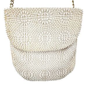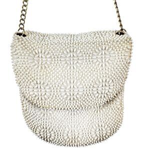 Vintage White Beaded Shoulder Bag Gold Chain Retro 50's 60's Evening Bounty