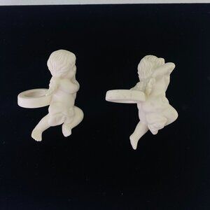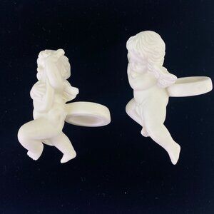 Vintage White Bisque Porcelain Angel Candle Huggers Pair