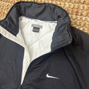 Vintage White Black Nike Puffer Jacket Spell Out (XL) Back Y2K Silver Tag (Men’s). No holes, stains or snags. It’s used but in very excellent condition.