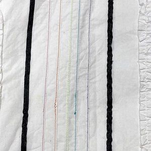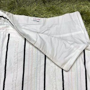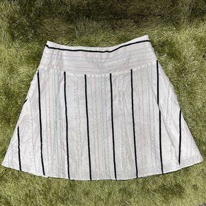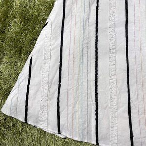Vintage White Black & Rainbow Striped Linen Mini Skater Skirt Size L