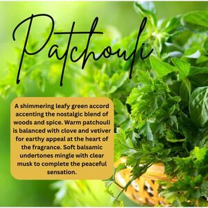 Scent profile: A grounding blend of patchouli, clove, and vetiver with subtle balsamic and musk undertones that evoke warmth and peace.