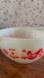 Charming white bowl featuring a vibrant red bird pattern. An excellent condition minor dealing on the bottom from general use minor wear on the paint from general use otherwise no chips or cracks.