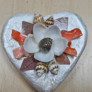 Vintage White Capiz Shell Heart Shaped Trinket Box Shell Flowers READ NOTE