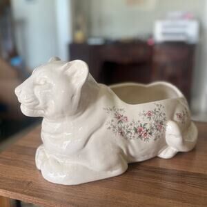 Keywords: vintage planter, ceramic cat planter, shabby chic decor, cottagecore home, floral ceramic, retro jungle, whimsical decor, indoor plant pot, unique ceramic animal planter