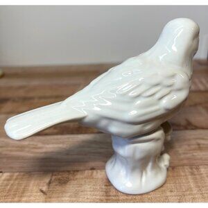 Vintage White Ceramic Bird Figurine On Floral Base Glossy Finish Collectible Hom