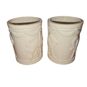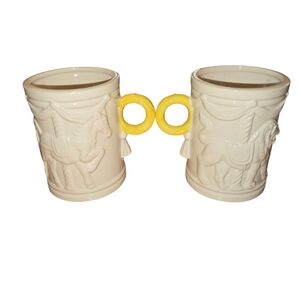 Vintage White Ceramic Carousel Themed Mugs Rubel & Co (2)