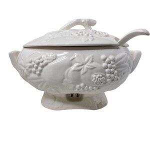 Vintage White Ceramic Electric Soup Tureen With Lid and Ladle Japan Akron Model