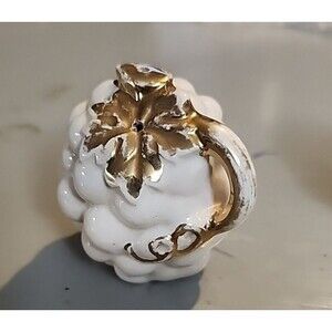 Elegant vintage white ceramic salt and pepper shakers shaped like grape clusters with delicate gold-gilt leaves and stems. A charming mid-century table accent that brings a touch of wine-country sophistication or Hollywood Regency glam to your kitchen or dining room décor.