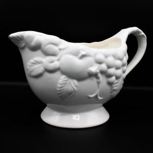 Vintage White Ceramic Gravy Boat Embossed Fruit Design Signature SIG Japan 24 oz