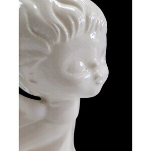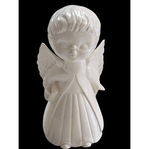 Enhance your space with this charming pair of white ceramic angel figurines. Their timeless design and delicate craftsmanship bring a touch of elegance.