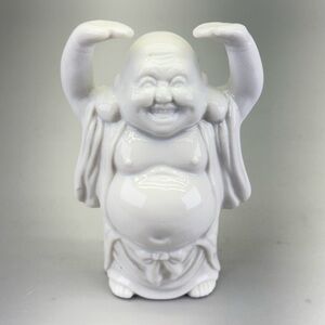Bring joy and serenity to your home with this elegant Vintage White Ceramic Laughing Buddha statue. He’s got an infectious smile and just look at that belly 😊
