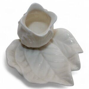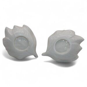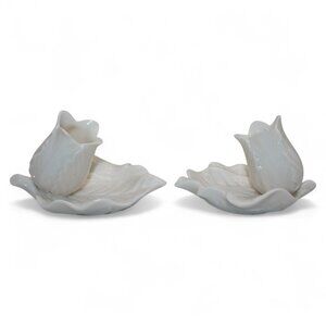 Vintage White Ceramic Tulip & Leaf Candle Holders
