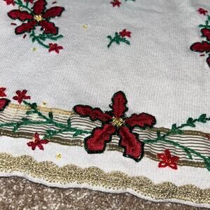 Vintage White Christmas Sweater 90s Beaded Xmas Poinsettia Embroidered Jumper
