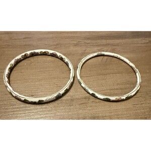 Vintage White Cloisonné Enamel Over Gold Flower Design Bangle Bracelet Set of 2