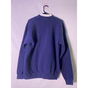 Vintage White Collared Grandma Mock Neck Sweater Pullover Navy Blue Floral Large