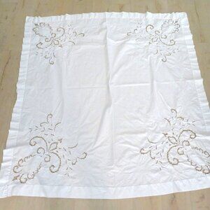 Vintage White Cotton Battenburg Lace Embroidered Cutwork Tablecloth Floral Desig