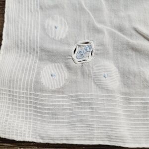 Vintage White Cotton Blue Embroidered S Initial Handkerchief