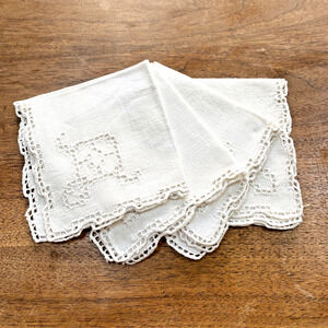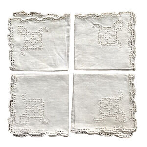 Vintage White Cotton Muslin Fabric Cocktail Napkins Cutwork Hand Finished (4)