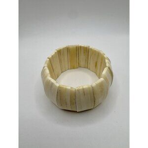 Vintage White Cream Bone Stretch Cuff Bangle Bracelet Boho