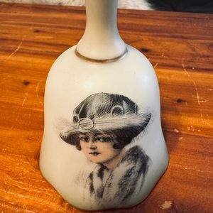 Elegant vintage white decorative bell featuring a detailed lady portrait. Perfect for adding a touch of classic charm to your home decor.