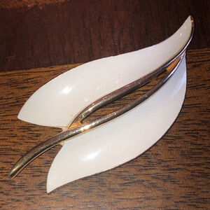Vintage White Enamel Gold Tone Retro Brooch Shoulder Pin