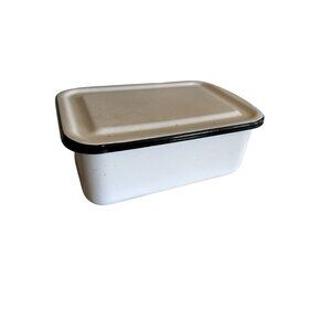 Durable white enamel storage box with a secure lid. Ideal for organizing kitchen essentials or storing miscellaneous items. Classic vintage appeal.