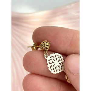 Vintage White Enamel Snowflake Gold Toned Dangle Geometric Post Back Earrings