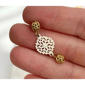 Lovely pair of lightweight snowflake enamel covered vintage earrings. These have post backs, will include new backings as well. These have two gold toned textured balls @ the top and the bottom. Dainty and lightweight but excellent quality.