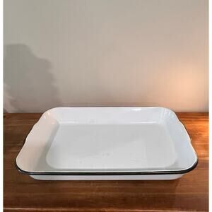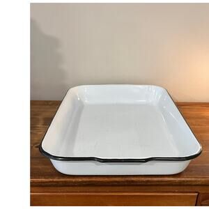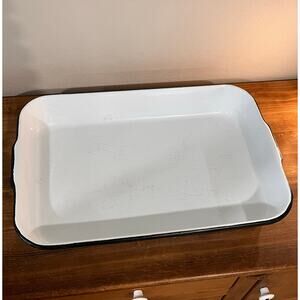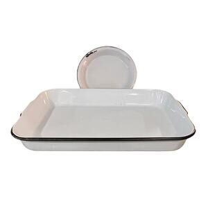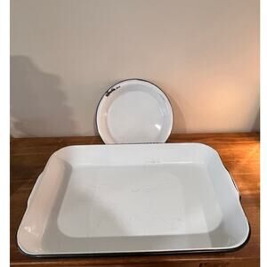 Vintage White Enamelware Pan Lot – Roasting Baking Tray Round Pie Rustic Kitchen