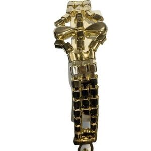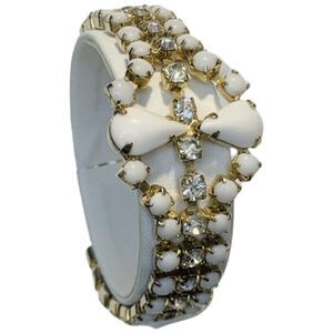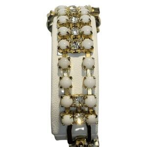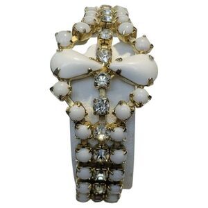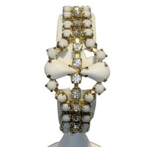 Vintage White Faceted Prong Beaded Shimmer Rhinestone Gold Tone Bracelet 7.5”