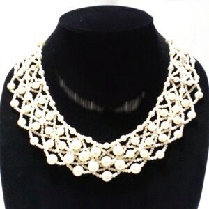 Vintage White Faux Pearl Woven Choker Collar Style Beaded Necklace