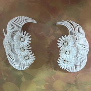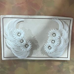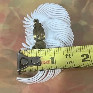 Vintage White Feather and Daisy Soft Plastic Statement Fan Earrings