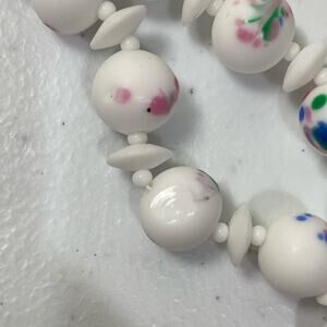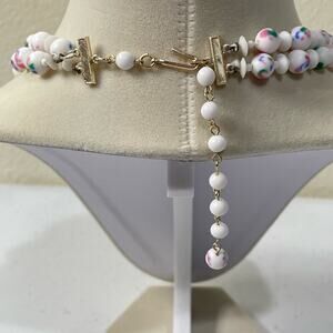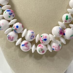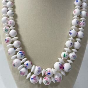 Vintage White Floral Porcelain Beads 2 Strand Necklace Coquette Romantic Japan