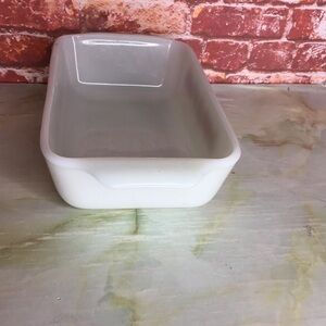 White Vintage Milk Glass Casserole Dish Baking Pan Loaf Pan from the Fire King Line with Fruit Design By Anchor Hocking
