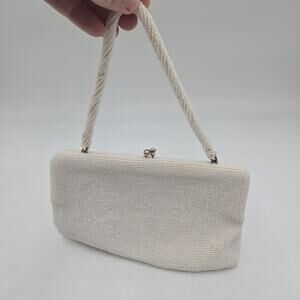 Vintage White Fully Beaded Clutch Purse 1960’s Voguemont Kisslock Bridal