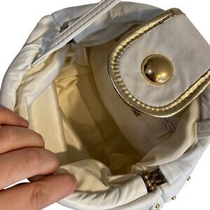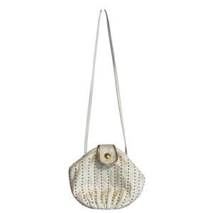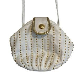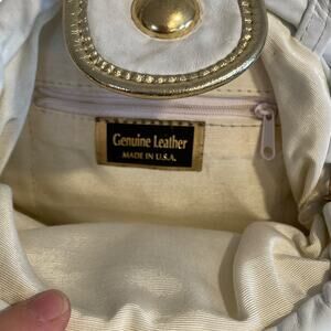 Vintage White Genuine Leather Made In USA Gold Accent Crossbody Purse