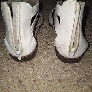 These are used, see pics for details of scuff markings. Also have a listing for black and another listing in brown. One side on right shoe is bent in until someone puts their foot in it and it will regain it's shape. Pet friendly home but kept in storage tub.