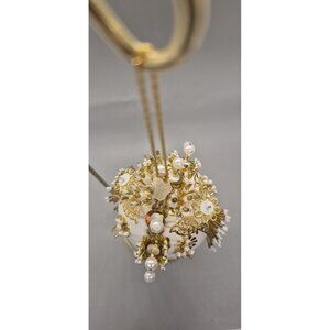 Vintage White & Gold Butterfly Handmade Push Pin Ornament w/Stand Decor