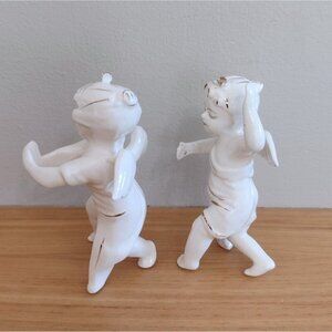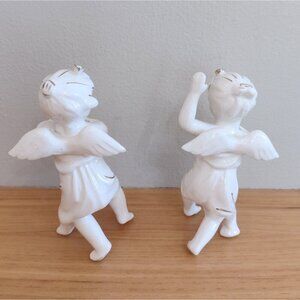 Vintage White Gold Cherub Angel Ceramic Candle Huggers Holders Christmas Holiday