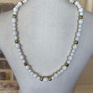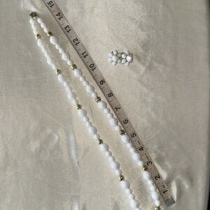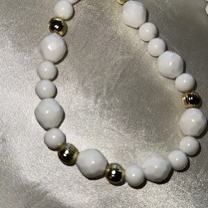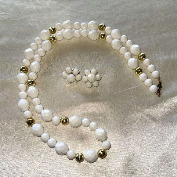 Vintage White Gold Faceted Textured Bead Necklace with Matching White Faceted Bead Button Style Earrings Set. Earrings are clip ons. Great Vintage condition. Approximate measurements in photos.