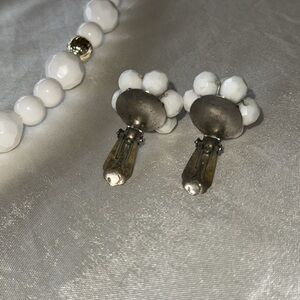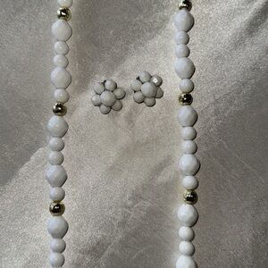 Vintage White Gold Faceted Bead Necklace Matching Bead Button Style Earrings Set