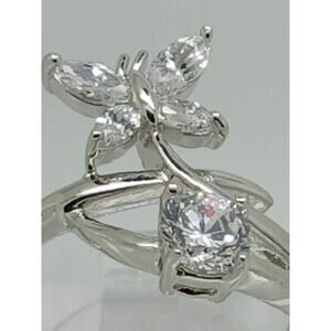 Vintage White Gold GP Round Marquise Cut Sim Diamond CZ Butterfly Ring Size 7