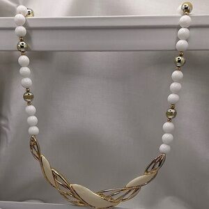 Vintage White & Gold Tone Statement Necklace