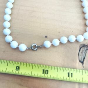 Vintage White Graduated Plastic Bead Necklace. Spring ring closure. In very good vintage condition. Please see pictures for condition and approx. size measurement.