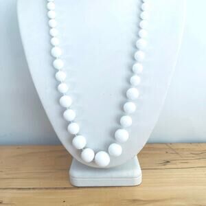 Vintage White Graduated Beaded Necklace 50s 60s Mid-Century