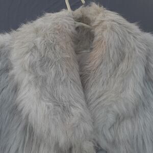 Vintage White Gray Fur Long Coat Jacket Women's XL Long READ