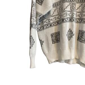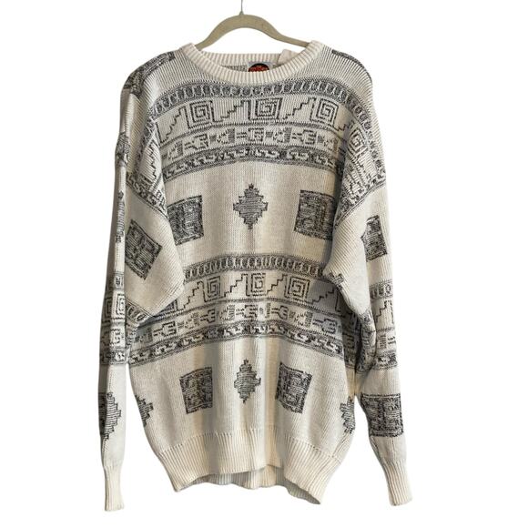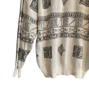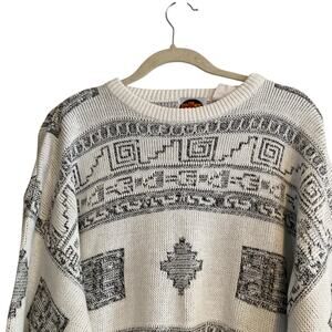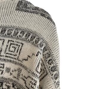 Vintage White Gray Pullover Abstract Grecian Pattern Acrylic Sweater Size Medium